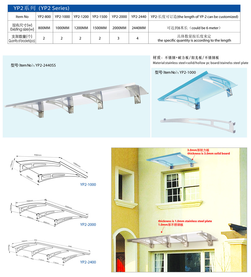 材质:不锈钢+耐力板/阳光板/不锈钢板